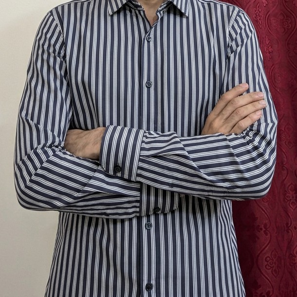 Men’s Grey Vertical Stripe Casual Shirt