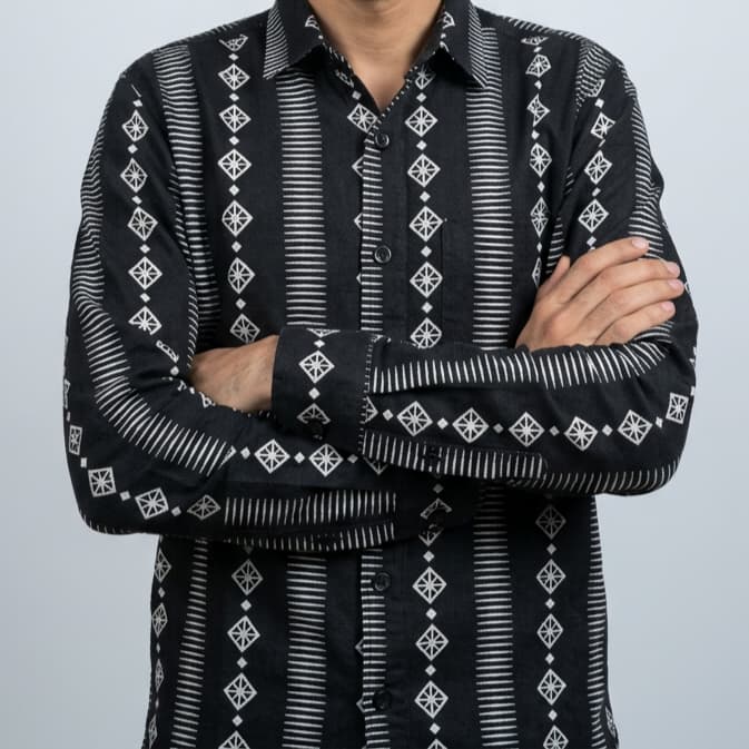 Men’s Black Pattern A/C Cotton Full Sleeve Shirt