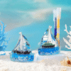 Add a touch of the ocean to your desk! This stylish crystal ship showpiece works as both a penholder and a paperweight, making it practical and decorative at the same time.