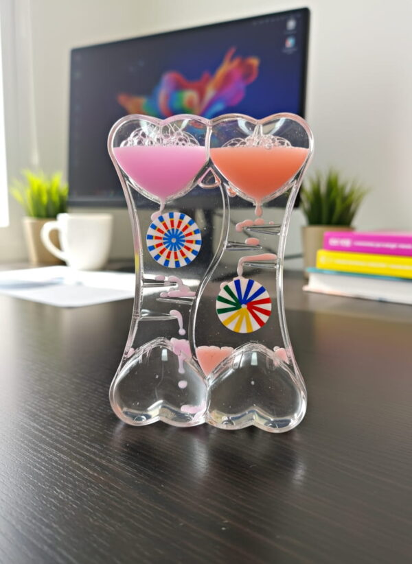 Double Heart Liquid Motion Timer Rainbow